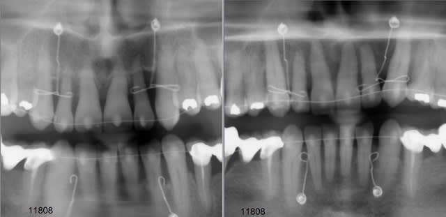 L'ingression pure au niveau des incisives inf est peut etre moins visible que sur les incisives sup, mais il ne faut oublier que la supra incisive inf etait moins importante aussi, il suffit de regarder le pano pour voir que le fil utilisé à l'arcade inferieure est mois deformé dans le plan vertical qu'à l'arcade maxillaire.