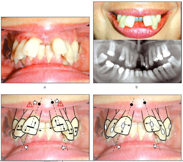 Tu peux très bien arriver à cette résultat (vestibulo version) en utilisant 4 bagues ,4 mini visses en postérieure comme ancrage indirecte (sans chirurgie) et reverse courbe niti TA 0.12