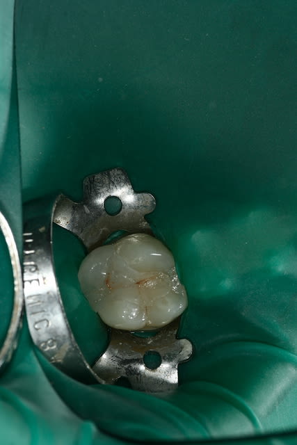 Mettre la digue sur plusieurs dents est un poil plus long, mais tellement plus pratique pour y voir clairement sans être gêné par la tension du caoutchouc. Cette tension d'ailleurs est un sérieux inconvénient à mon avis en endodontie car elle agit parfois en poussant de côté la tête du contre-angle. J'ai cassé un instrument dans un canal une fois à cause de ça. C'est pourquoi je trouve que chaque fois que possible sans trop se prendre la tête, il vaut beaucoup mieux isoler un quadrant qu'une seule dent.