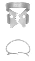 Crampons 12A et 13A exclusivement, mords dentelés. Le mord le plus large va en vestibulaire. Donc 12A pour les secteurs II/IV et 13A pour I/III. Excellente rétention sur les molaires temporaires. Souvent bonne rétention sur les 6 en éruption. Si manque de rétention, je n'hésite à les planter dans la gencive.