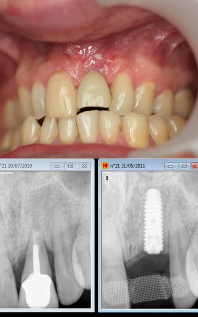 extraction-Summers-implantation- MCI sur une "jolie" provisoire avec du composite montée sur un pilier en pick...