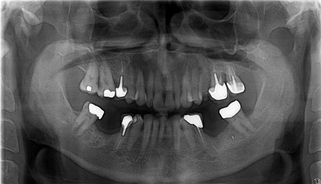 PS: patient bruxo, 68 ans, bonne hygiène.