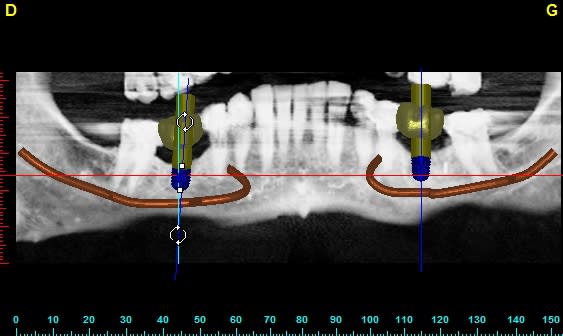 Sur la simulation que je joins, j'ai placé 2 implants 5.2 x 6.5 pour 36 et 46 en unitaire.