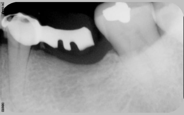je vois cette patient de 62 ans pour la premiére fois en novembre 2010, elle me demande une rehabilitation des secteurs édentés, sont absentes 14, 15, 47,et 36 toutes les autres dents sont ultra saines, pas de tartre, un excellent controle de plaque, seul "hic" la patient à une valvulopathie qui la classe dans les patients à risque A...