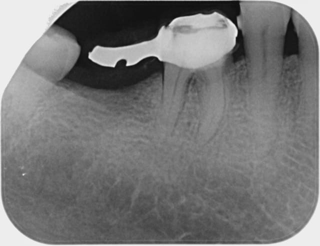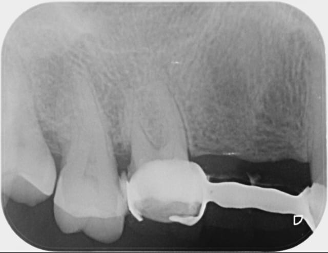 de toute façon là il n'y à plus rien à faire, valvulopathie à risque d'endocardite il n'y a pas de trt radiculaire qui tienne c'est l'avulsion directe (sauf eventuellement pour la 35)en cas de pathologie pulpaire. ce qui m'embete c'est le bridge 14-16 qui génère une gingivite chronique ce qui n'est pas moins dangereux au regard du risque d'endocardite.