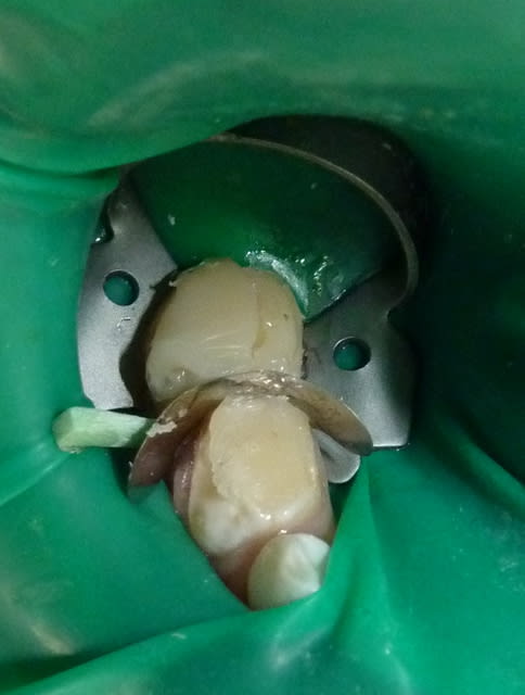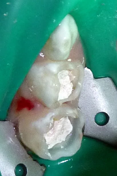 Dans le cas présenté ici, j'ai aussi clampé très bas car délabrement juxta-gingival.