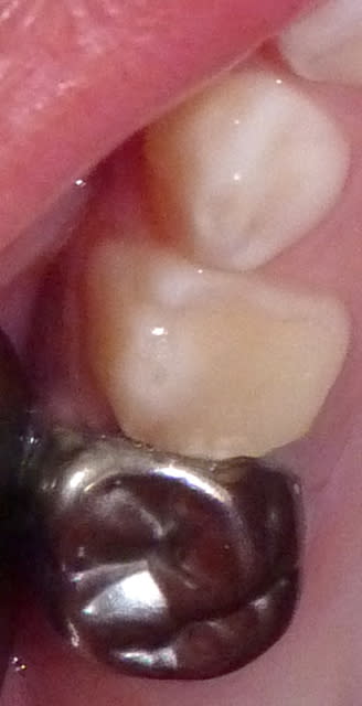 - Nettoyage avec Tooth Mousse. Examen endo-buccal. Demonstration des instruments (aspiration, contre-angle...). Examen radiographique. 11 dents cariées sur 20. Fluorose légère.