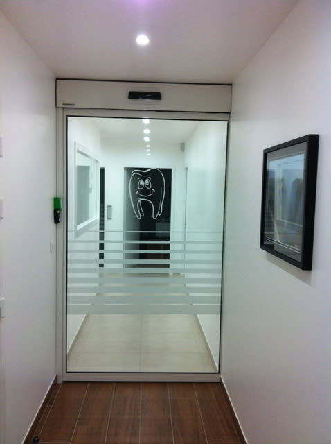 Doolin, les inscriptions sur les vitres j'ai fait faire ça par un commercant de mon village qui fait des faire part plaques et copies en tout genre et qui fait des inscriptions sur des vitrines , du classique quoi... et moins cher que des fournisseurs dentaires