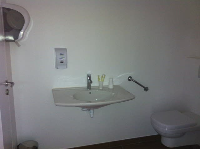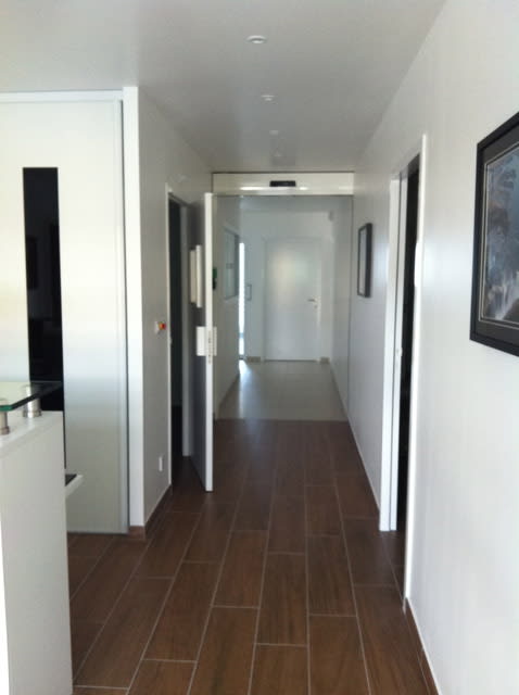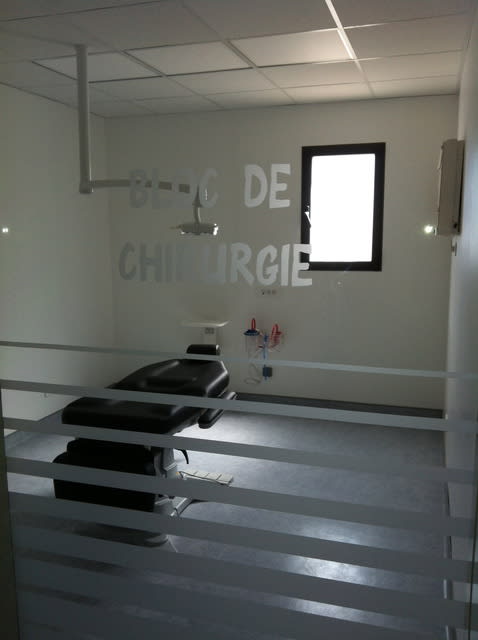 Alors pele mele il y a le cabinet principal ( deux pièces sont pretes mais pas installer c'est pour plus tard..) , la rampe handicapés la sté le bloc de chir l'accueil la salle d'attente le couloir les toilettes pour patients la porte automatique qui sépare la zone clinique et la zone administrative la salle pano ...le bureau n'est pas visible c'est le bazar .