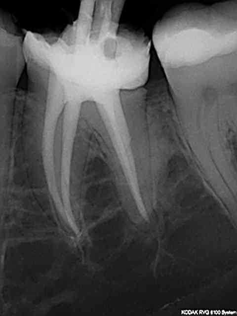 Pan lingual fracturé sur 36 (l'onlay est resté en place) et vu qu'on est en france c'est ........ pulpec, puis ic et couronne métal (accroches toi pour lui fourguer un onlay non remboursé). La 16 c'est un autre patient , j'arrive pas à la virer. Elles sont traitées en finition au r40 pas forcément mieux que le r25 mais au moins l'aiguille de la seringue d'irrigation va à l'apex !)