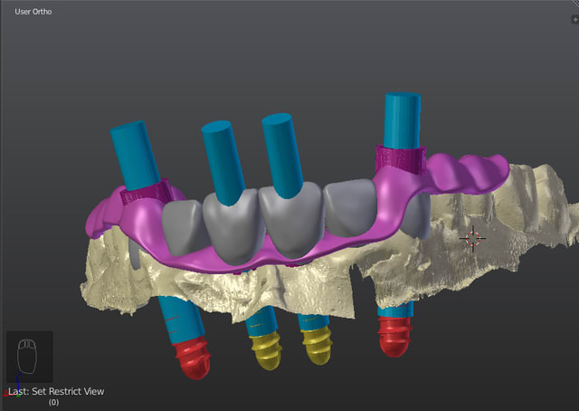 Here an imaginary case where prosthetic plan drives implant placement and a temporary bridge shell could be made to pick up temporary abutments....