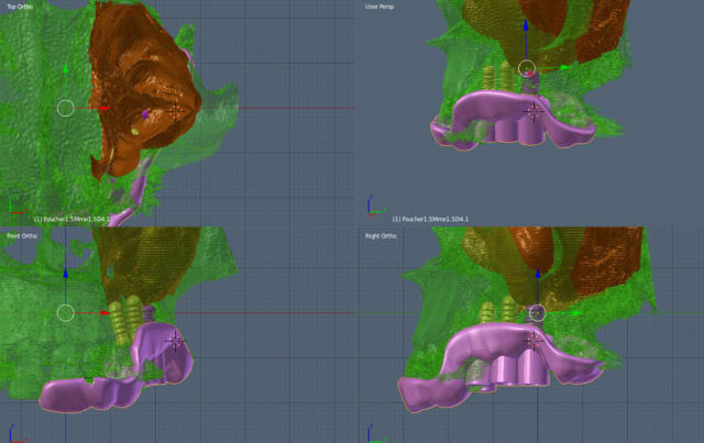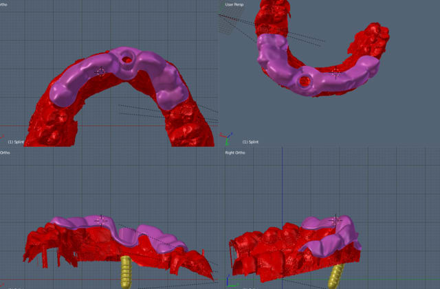 j'ai repris un ancien cas que j'avais posé avec un guide (blanc) et j'ai refait ce guide (splint)avec le nouvel add-on, la différence est vraiment importante et visible sur la photo3