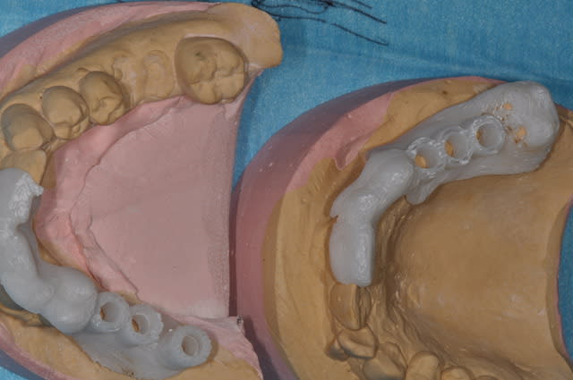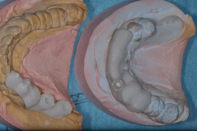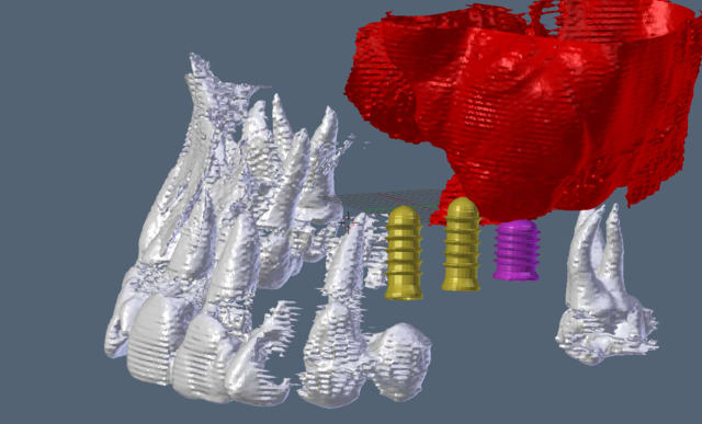 Here an imaginary case where prosthetic plan drives implant placement and a temporary bridge shell could be made to pick up temporary abutments....