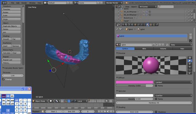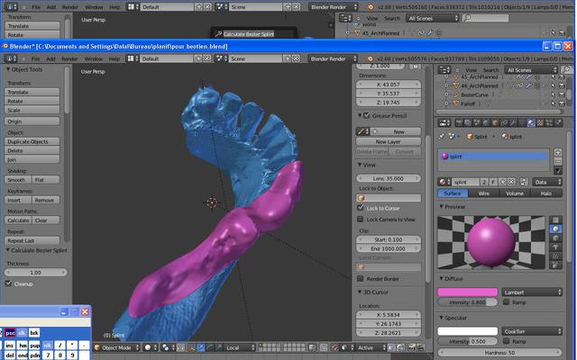j'avoue que j'ai beaucoup appris, j'ai eu le meme problème que Inset (splint inversé) mais après avoir cocher dans user préférence (looptools, mesh:relax, bsurface sont cochés) j'ai pu inseré le splint correctement sur le modèle.