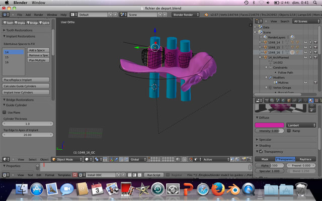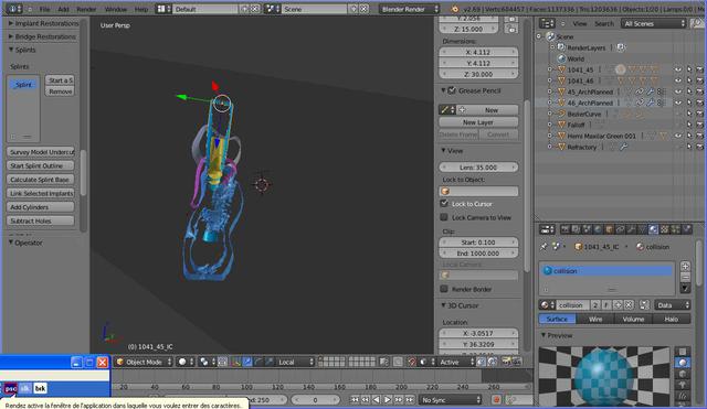 voila ou je suis arrivé avec la version 6,67. j'ai pu mettre en place les cylindres sur les implants, alors que c'était impossible avec la 6,68 de les placer sur les implants. je vous posterai très prochainement la suite de mon evolution. Merci