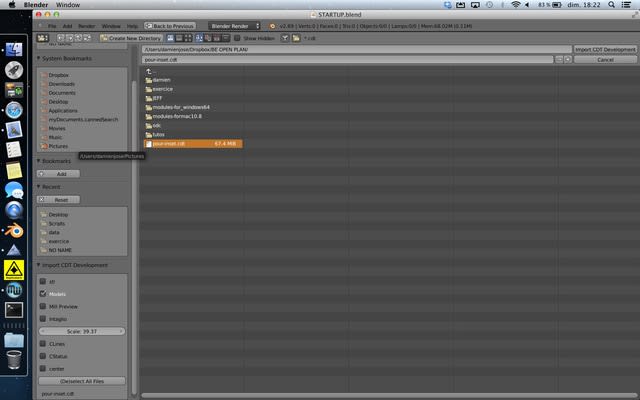 j'ai blender sur osx 10.8 et blender sous win7 avec parallel desktop et les deux fonctionnent .....même l'import cdt depuis quelques jours......