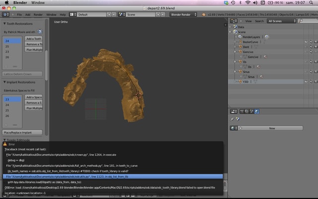en essayent de refaire l'exercice avec le Y3D dans OSX 10.6.8,et blender 2,69 (pour vérifier si le protocole est reproductible sur un autre système d'exploitation. je bloque sur cette étape. (screnn shot)