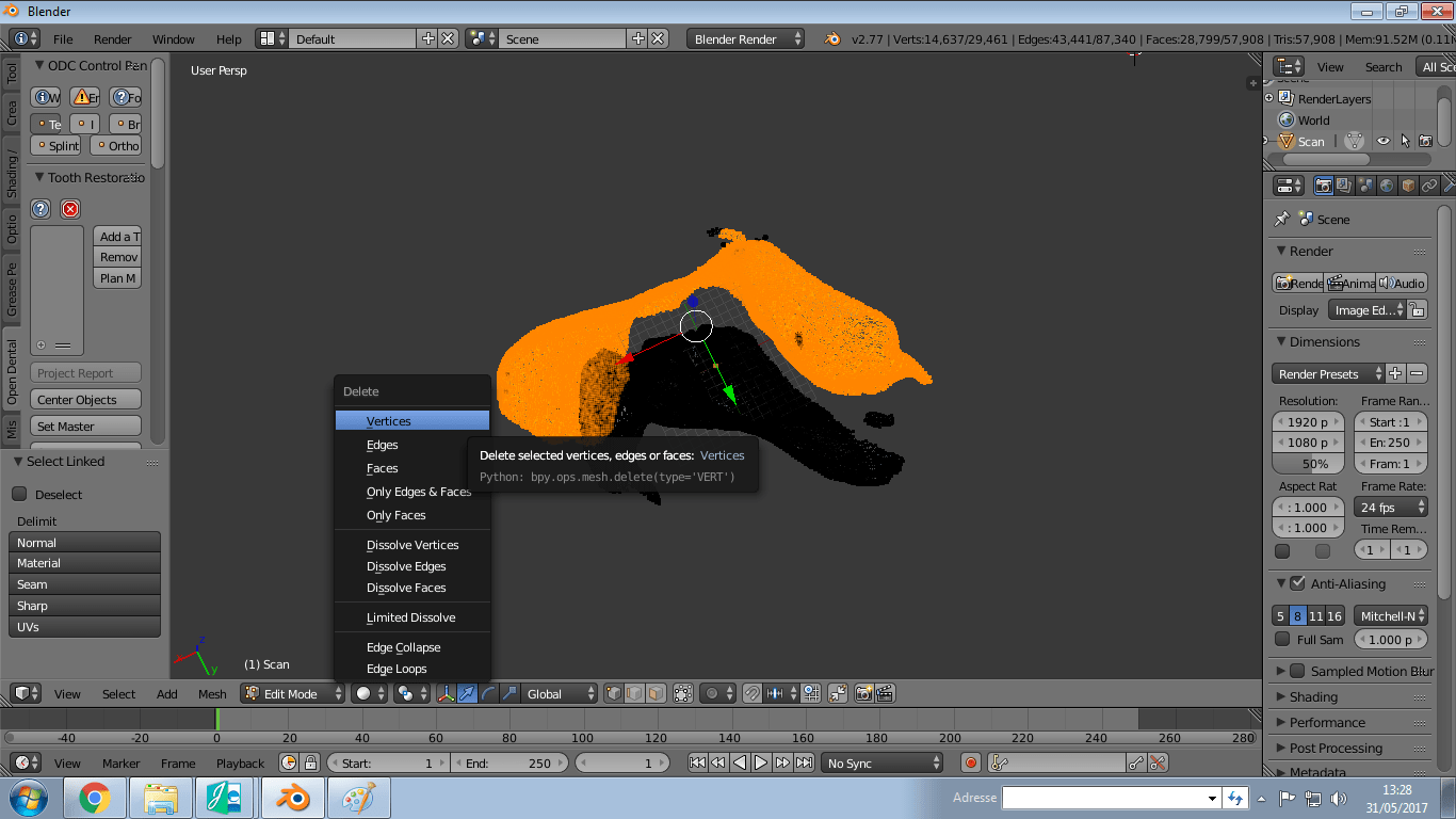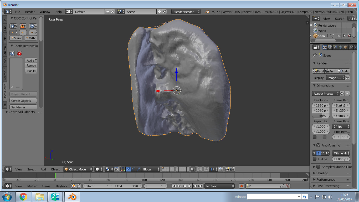Sinon meshlab est plus facile à utiliser que blender pour cela. Bien sûr porte empreinte en plastique puis cone beam normal.