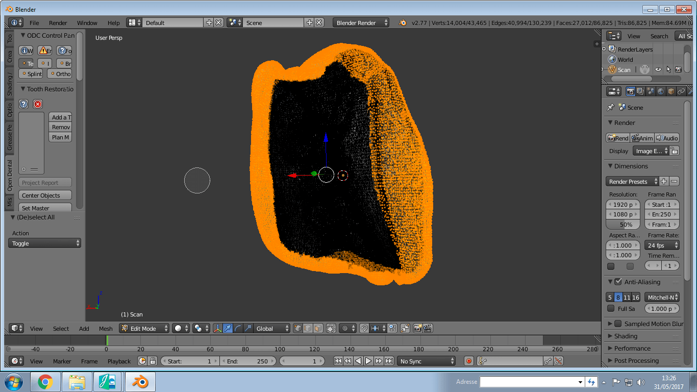 Sinon meshlab est plus facile à utiliser que blender pour cela. Bien sûr porte empreinte en plastique puis cone beam normal.