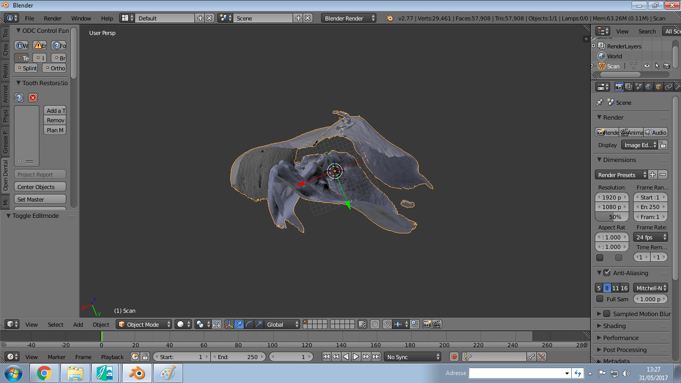 Sinon meshlab est plus facile à utiliser que blender pour cela. Bien sûr porte empreinte en plastique puis cone beam normal.