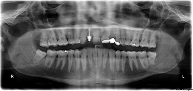 pano 2 leger déplacement en mésial de la partie apicale de l'implant