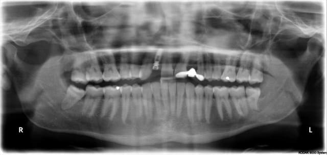 pano 2 leger déplacement en mésial de la partie apicale de l'implant