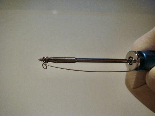Le fil utilisé comme ressort pour tracter la caine s'appelle "CT8-1" = Cortical, TMA, terminaison en forme de "8", 1 bras.
