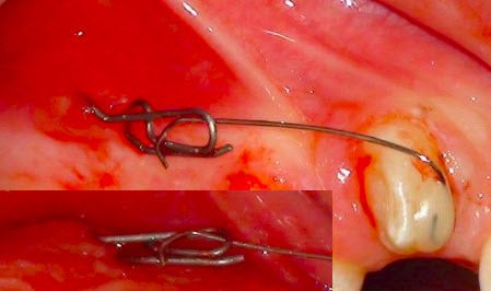 Merci Dancha. Tu as dis que l'effraction gingivale était moins importante qu'avec une vis à tête supra-gingivale mais le fil est mouvant pendant un certain temps d'ou un risque accru de percolation bactérienne. As tu eu des cas d'inflammation gingivale en sorti de fil ?