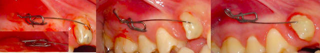 Ce système simplissime peut également être utilisé dans tous les cas où l'on rencontre une forte rotation. Je l'utilise par exemple au début d'un traitement lorsqu'une prémolaire a fait éruption à 90° ou plus. Son extrémité est alors fixé d'une manière suffisamment lâche pour pouvoir glisser.