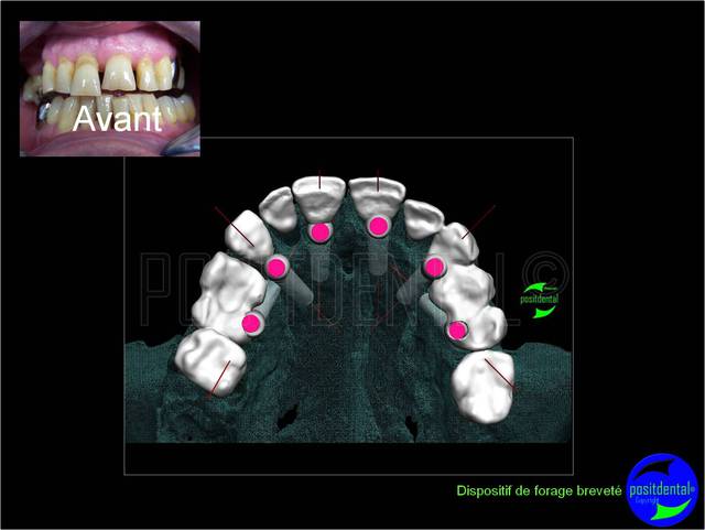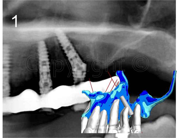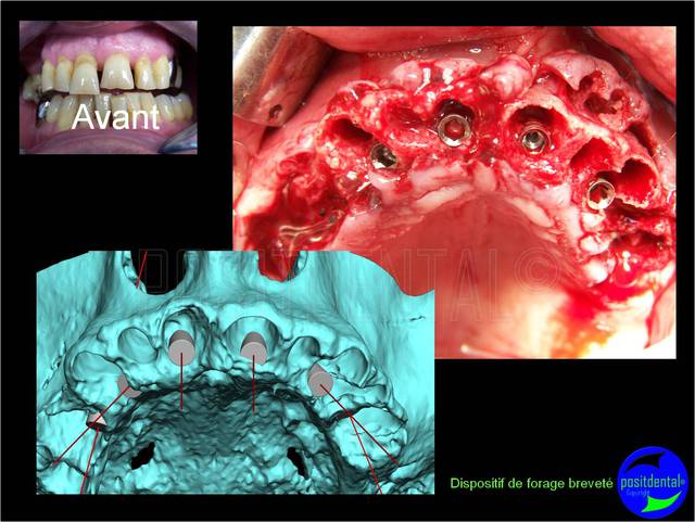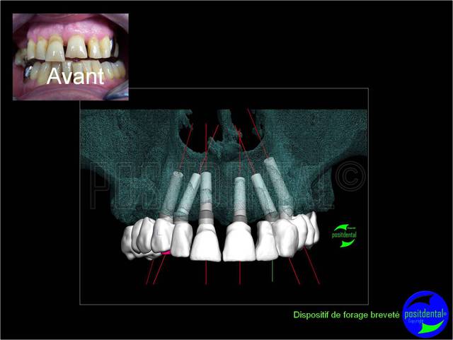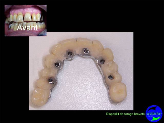 Céramik, ce cas comprend 6 implants angulés à 30° et bridge cantilever sur extraction, implantation et mise en charge immédiate en une chirurgie.
