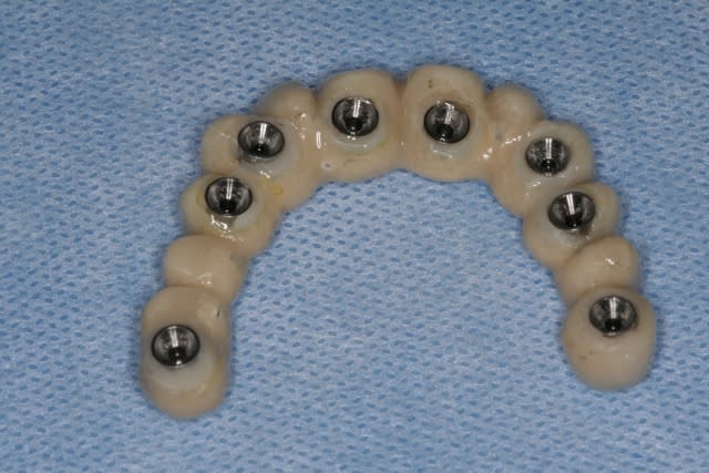Joli cas pluton! 2 petites questions qui me viennent: as tu utilisé des piliers multi_unit?Si oui ,pourquoi tu n'utilises pas les temporary abutments pour tavailler en direct implant sans passer par l'intermediaire des multiunits.