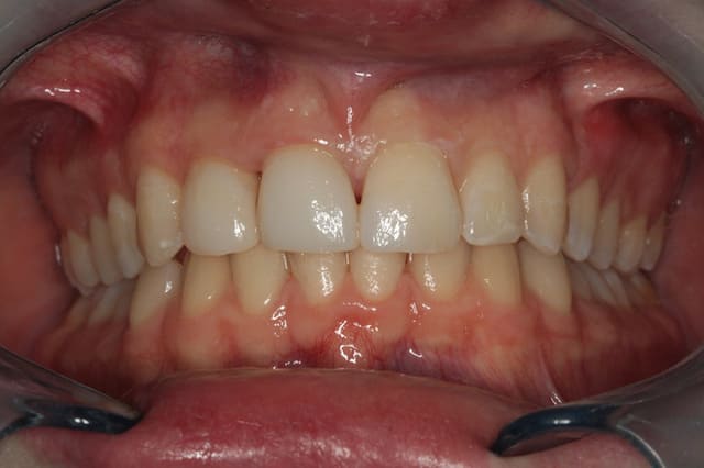 J'étais super satisfait de mon travail en bouche. Un peu moins à la vue de la photo. Une photo ne pardonne pas les détails. Teinte un peu trop claire, bord incisal de 11 pas assez symétrique à la 21.