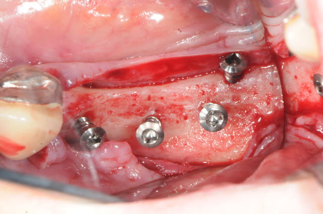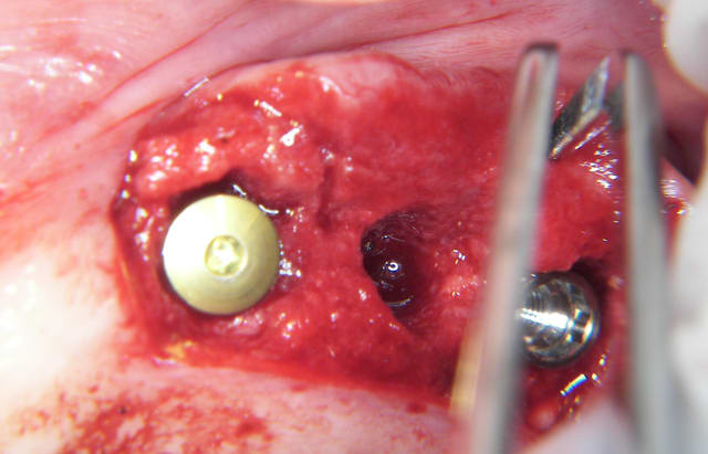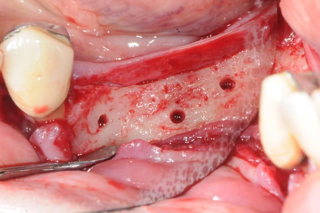 mais çà n'est qu'une technique, y en a d'autres comme par ex des ROG en "piquet de tente" avec des vis d'ostéosysthèses qui soutiennent le biomat et la membrane,les techniques de ROG pures avec membranes non résorbables, etc...