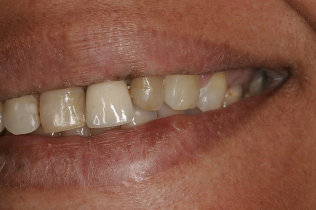 On peut "bricoler" avec des composites, cela reste souvent moins délabrant que de la prothèse céramique, mais l'esthétique final et le pronostic sont très souvent moins bon. Je suis persuadé que cette patiente nécessite une prise en charge globale.