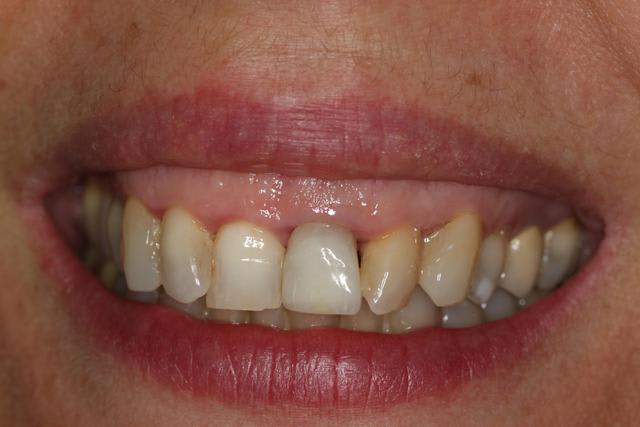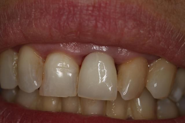 La macro-texture au niveau du tiers médian choque un peu par rapport à la dent adjacente.