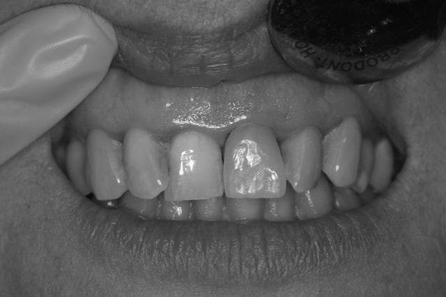 Ainsi tu as la dent de référence et ton teintier dans le même plan. C'est plus facile pour lui d'analyser la teinte.