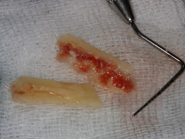 pour la partie cervicale, j'ai simplement refermé le lambeau au dessus de la poudre d'os condensée