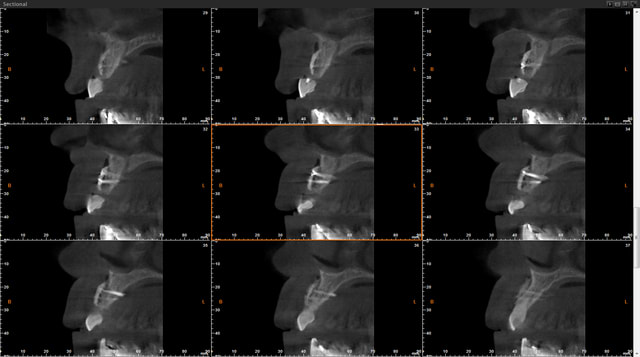 Je dois dire que quand j'ai reçu les images du scan j'ai fait défilé les coupes horizontales de cervical en apical et là j'étais ravie : on ne voyait cette maladaptation que dans une faible zone au tiers apical dans le creux de la concavité de 13. C'est après que j'ai déchanté.