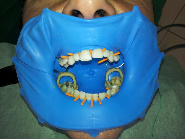 je l'ai mis sur le patient le plus improbable, celui avec qui le simple fait de vouloir s'approcher de la cavité buccale avec un miroir provoque chez lui une irrésistible envie de te faire découvrir ce qu'il a mangé le matin même.