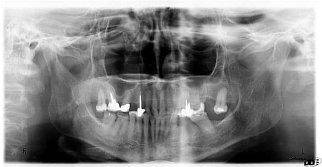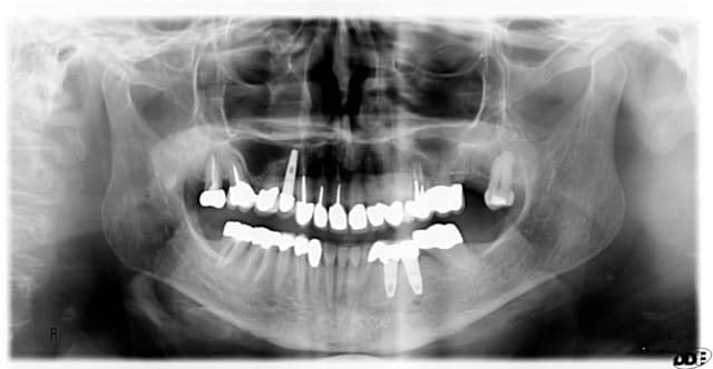 après quelques traitements endodontiques, l'accord de la patiente pour couronnes en or complètes en postérieur; quasi indestructibles...et quelques implants pour les zones édentées..