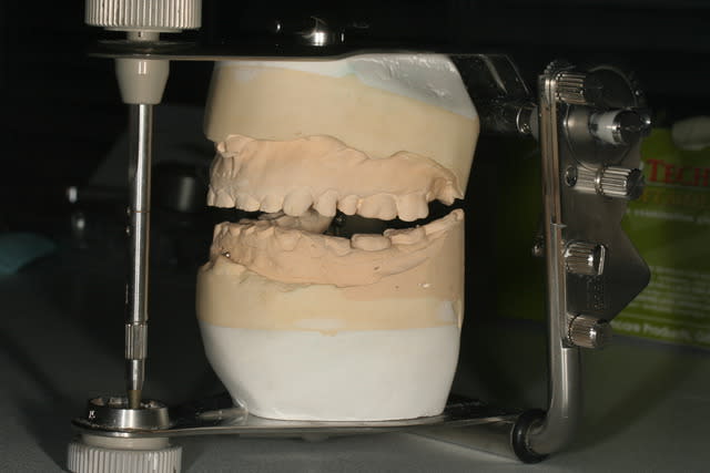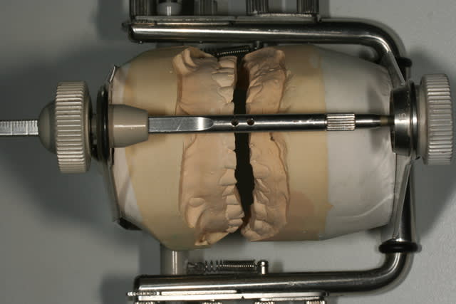 ton proth qui bouffe de la maquette toute la sainte journéee va te faire un wax en fonctin de ce qu'il pense qu'etaient les dents avant qu'ils ne se les bouffe. et ça va te donner une hauteur. de toute façon faudra bien remonter le bordel et pour le remonter faudra waxer.