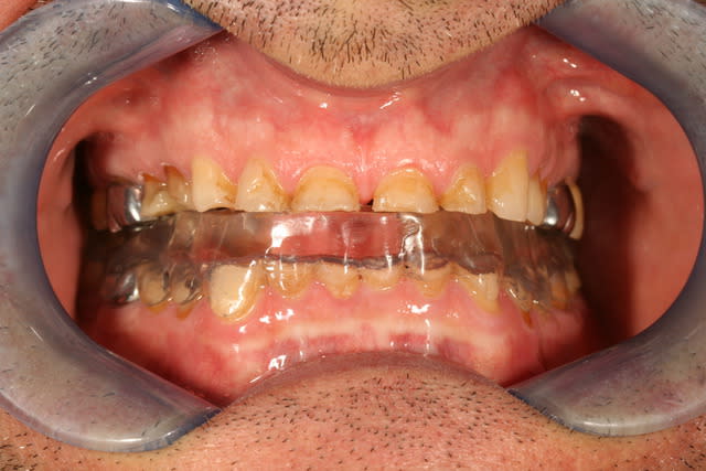 je lui ai demandé de porter la gouttière tout le temps, sauf pour manger