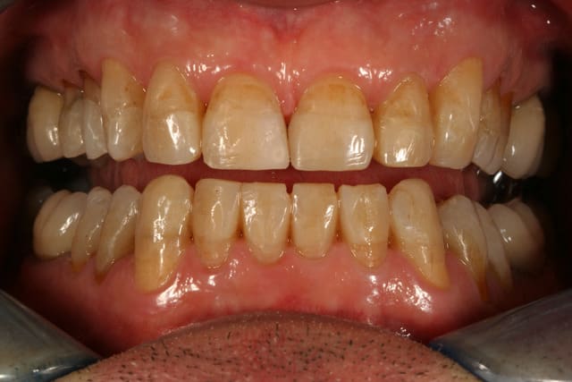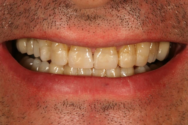 Très Belle réalisation. Superbe mise en forme. Ça peut paraître futile, mais avais tu penser au début du traitement de proposer un blanchiment au patient pour faciliter l'harmonisation des teintes des dents entre elles et des reconstitutions par la suite?