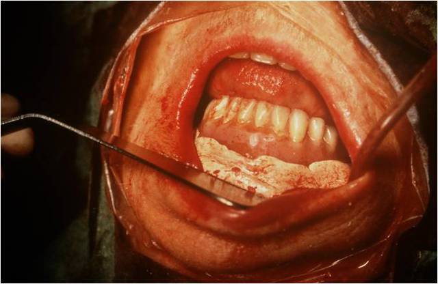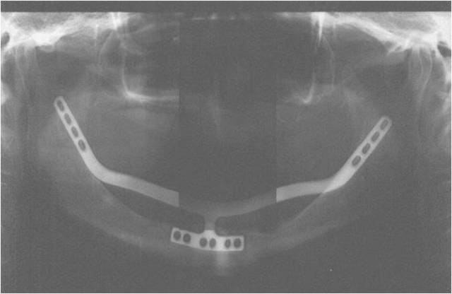 MANDIBULE Là tu poses 4 à 5 implants en flapless de 5 à 5 pour ne pas dépérioster la zone symphysaire et deux plaques en apposition pure en distal en full flap bien sûr