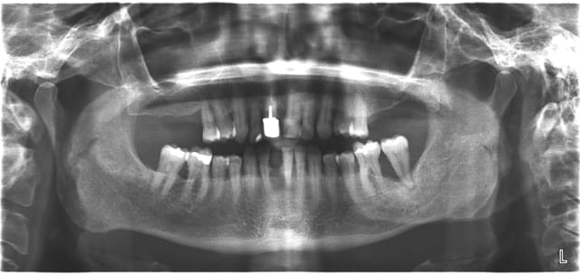 Mets des molaires en haut et vite! Parce qu'avec une paro comme ça sinon t'es bon pour extraire les deux blocs antérieurs très rapidement (en plus de traiter la paro et enseigner l'hygiène).