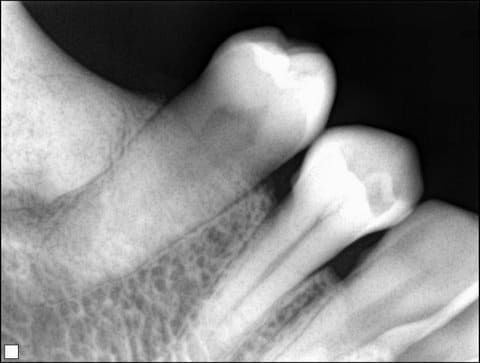 Une image radio du secteur 4. Femme de 40 ans. Aucun symptome particulier. Cela vous fait penser a quoi? On envoie chez le stomato ou pas pour explorer?