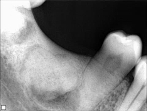 Sinon nadeem, tu sais tres bien qu'on ne peut pas faire un diagnostic sur une simple radio, y'a t-il des douleurs, une voussure, une coloration de la gencive, une ulceration, une adenopathie associée....