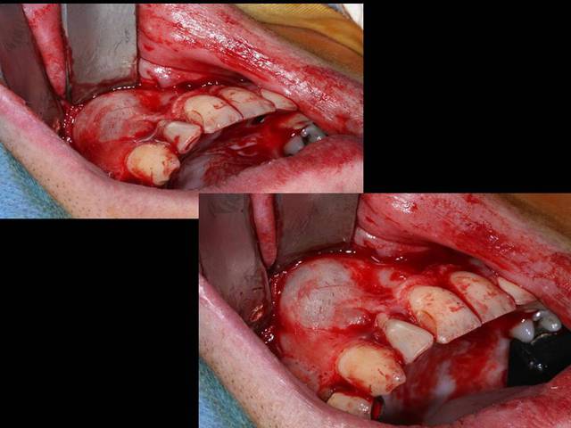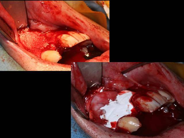 Salut je poste un cas d'un kyste à priori d'origine dentaire avec ROG pour éviter d'avoir un effondrement de la paroi vestibulaire avant pose implantaire.