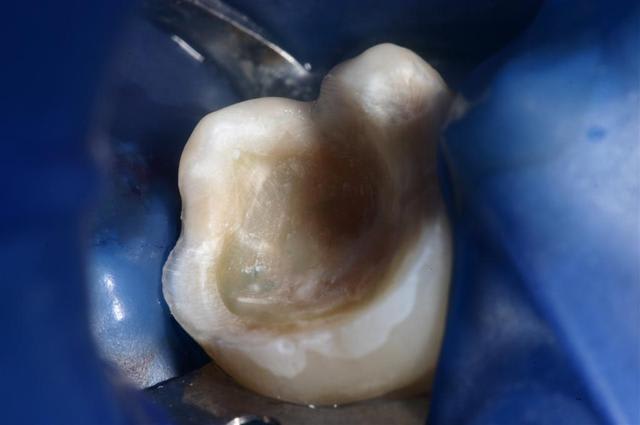 > Photo 1. Moi: "Voilà pourquoi il vous faut un onlay."