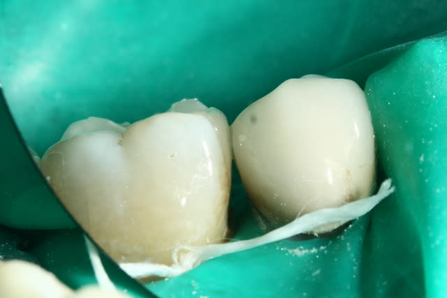 > les onlays. On a tout le temps de retirer les excès qui deviennent pâteux,